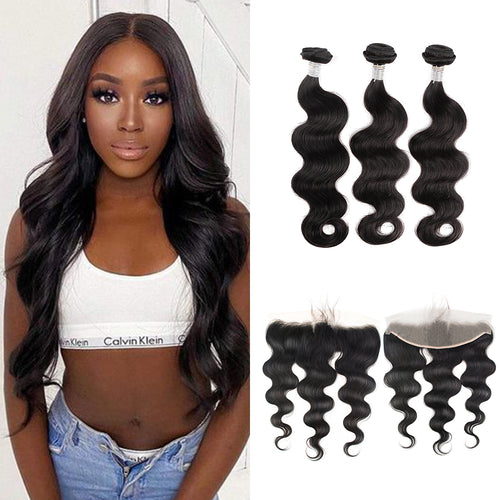 Ghair 100% Virgin Human Hair 3 Bundles With 13x4 HD Lace Frontal 12A Body Wave Hair Brazilian Hair