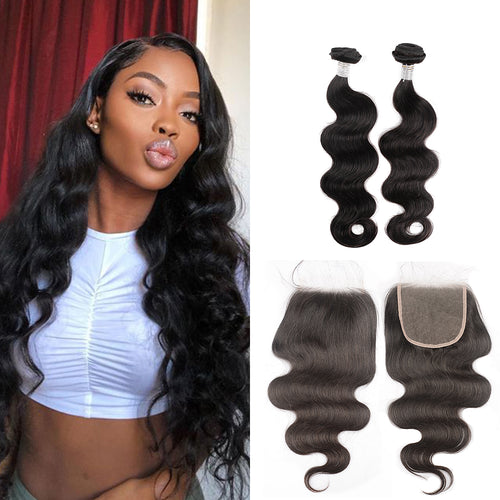 Ghair 100% Virgin Human Hair 2 Bundles With 5x5 HD Lace Closure 12A Body Wave Hair Brazilian Hair