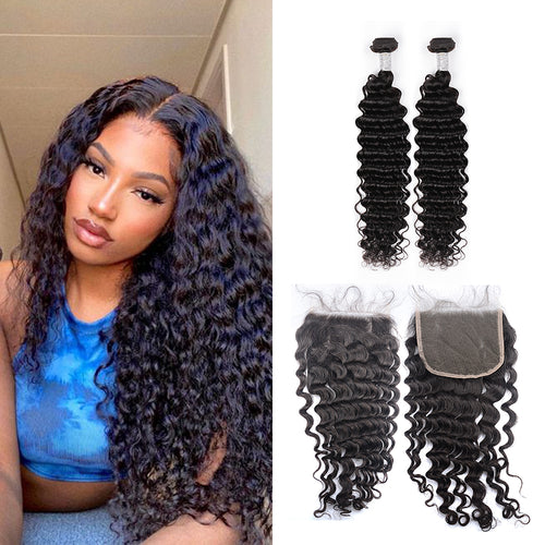 Ghair 100% Virgin Human Hair 2 Bundles With 5x5 HD Lace Closure 12A Deep Wave Hair Brazilian Hair