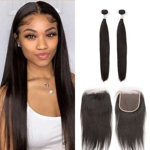 Ghair 100% Virgin Human Hair 2 Bundles With 5x5 HD Lace Closure 12A Straight Wave Hair Brazilian Hair