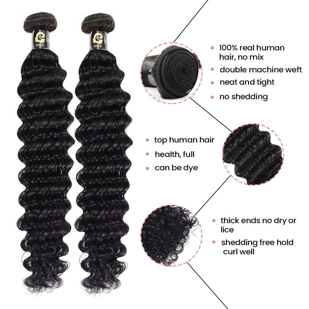Ghair 100% Virgin Human Hair 3 Bundles With 5x5 HD Lace Closure 12A Deep Wave Hair Brazilian Hair