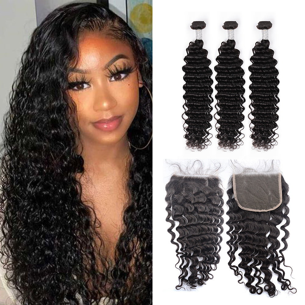 • Load image into Gallery viewer, Ghair 100% Virgin Human Hair 3 Bundles With 5x5 HD Lace Closure 12A Deep Wave Hair Brazilian Hair